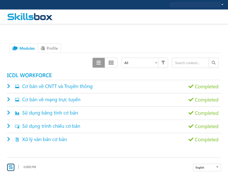 Tìm hiểu những thông tin thú vị về hệ thống thi trực tuyến Skillsbox , được sử dụng độc quyền trong tất cả các kỳ thi chính thức của ICDL – trong đó có Việt Nam. Với thiết kế chuẩn hóa quốc tế, chấm điểm tự động và giao diện thân thiện, Skillsbox giúp thí sinh dễ dàng làm quen với bài thi và nâng cao cơ hội đạt chứng chỉ ICDL ngay từ lần đầu.